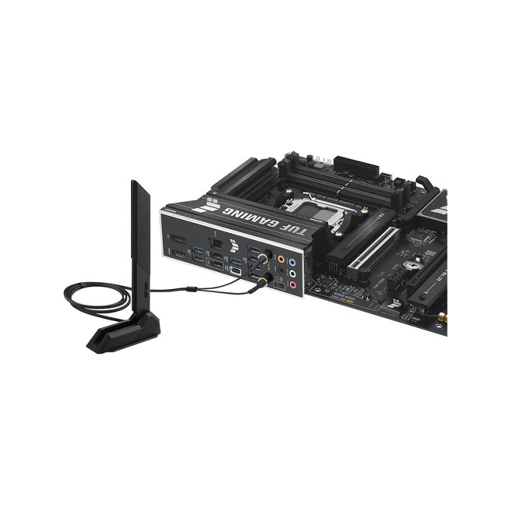Experience unparalleled data transfer speeds and seamless networking. The TUF GAMING B850-PLUS is equipped with a PCIe 5.0 x16 slot (with Q-Release) for the fastest graphics cards, alongside four PCI Express X1 slots. Storage is equally impressive with one onboard PCIe 5.0 M.2 slot and two PCIe 4.0 M.2 slots, all featuring dedicated heatsinks to maintain peak performance. For networking, enjoy next-generation Wi-Fi 7 and a Realtek 2.5GB Ethernet port, ensuring lightning-fast, low-latency online experiences. Extensive USB connectivity includes a rear USB 20Gbps Type-C, front USB 10Gbps Type-C, and Thunderbolt (USB4) header support. This motherboard is also primed for advanced AI PC applications, handling demanding tasks with ease.