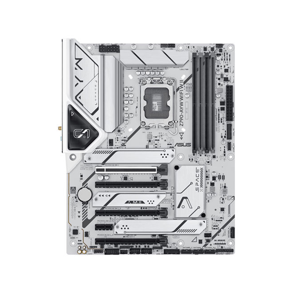 The ASUS Z790-AYW WIFI W II is built to handle the most demanding tasks with ease. At its core, the Intel LGA 1700 socket offers broad compatibility with the latest Intel Core 14th, 13th, and 12th gen processors, alongside Pentium Gold and Celeron Processors, ensuring you have access to the most powerful CPUs available. This board is truly Intel 14th Gen ready, providing an optimal platform for the latest computing advancements. Unlock unprecedented speed with a dedicated PCIe 5.0 x16 slot, delivering double the bandwidth of the previous generation for graphics cards and high-speed expansion cards. Paired with support for DDR5 8000+(OC) memory, the Z790-AYW WIFI W II guarantees fluid multitasking and rapid application loading, making every operation feel instantaneous. ASUS’s exclusive Enhanced Memory Profile II and OptiMem II technologies further refine memory performance, pushing your system’s capabilities to the limit.