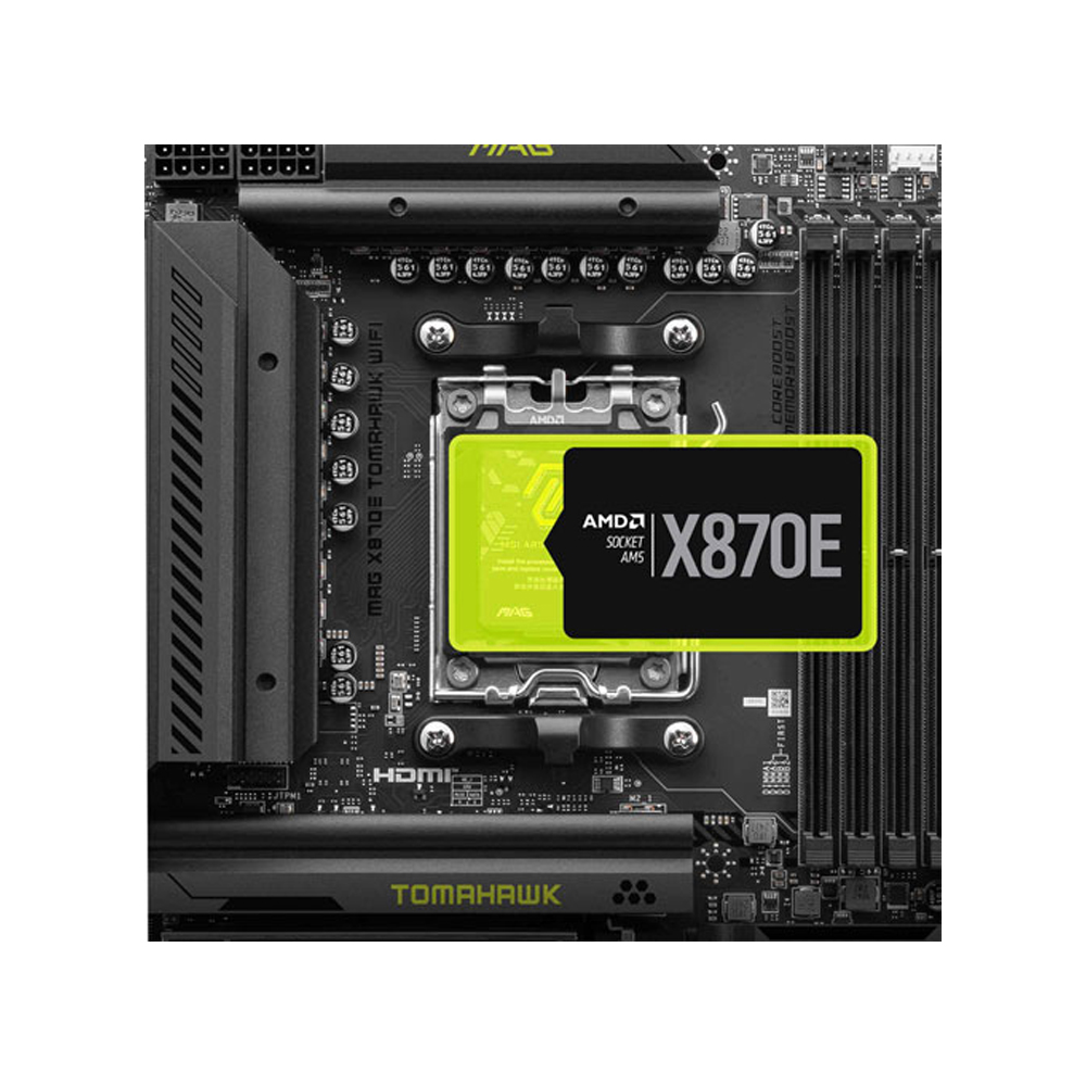 The MSI MPG X870 Tomahawk WIFI is purpose-built to harness the full potential of AMD’s powerful Ryzen 7000, 8000, and 9000 series desktop processors, thanks to its state-of-the-art AM5 socket. This ensures forward-compatibility and delivers incredible processing power for gaming, streaming, and intensive applications. A formidable 14+2+1 duet rail power system, coupled with dual eight-pin CPU power connectors, provides consistent and stable power delivery, crucial for pushing performance limits and maintaining reliability even during overclocking. With MSI’s Core Boost and Memory Boost technologies, your system runs optimized for peak efficiency. Furthermore, supporting dual-channel DDR5 memory at blazing speeds of 8,400+ MT/s (OC), this motherboard guarantees lightning-fast data access and seamless multitasking.